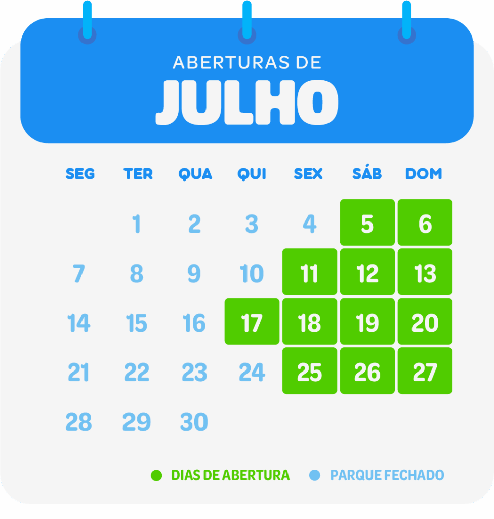 Durante todo o mês de julho, o parque se transforma em um verdadeiro paraíso para todas as idades, com piscinas refrescantes, muita música boa, recreação e atividades especiais. Ah, também tem promoção para quem quer aproveitar tudo isso e ainda fazer economia. É hora de ativar o modo férias em família e viver dias de lazer com tudo que você merece!