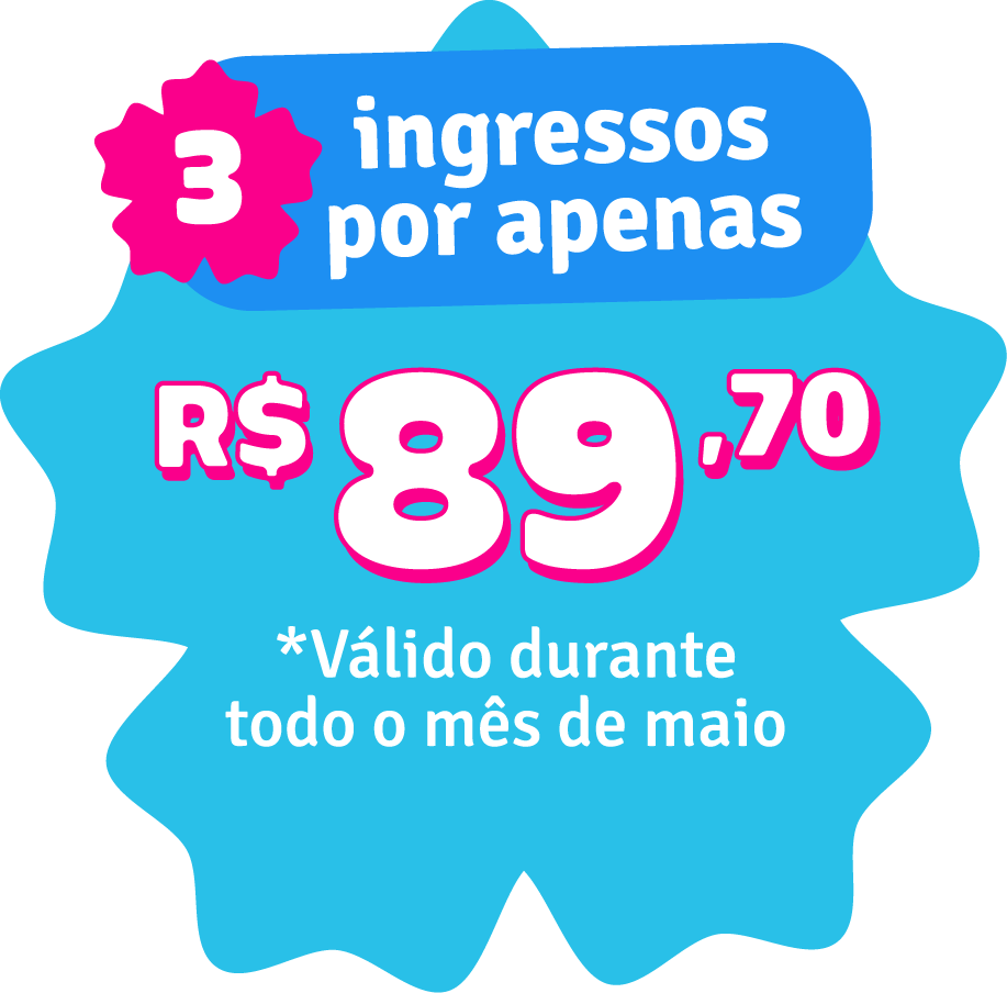 E para tornar o Mês das Mães ainda mais especial, preparamos uma promoção imperdível! São 3 ingressos por apenas R$89,70, com compra antecipada exclusiva pelo site oficial. É a oportunidade perfeita para presentear sua mãe com alegria, descanso e felicidade em família